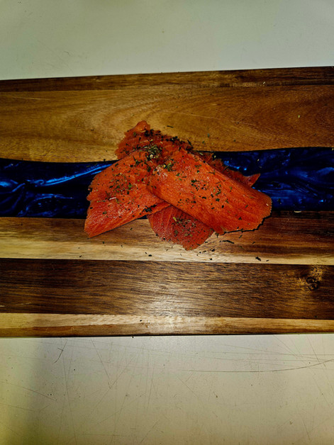 Wildlachs geräuchert geschnitten ca. 150g mit Alpenkräutern